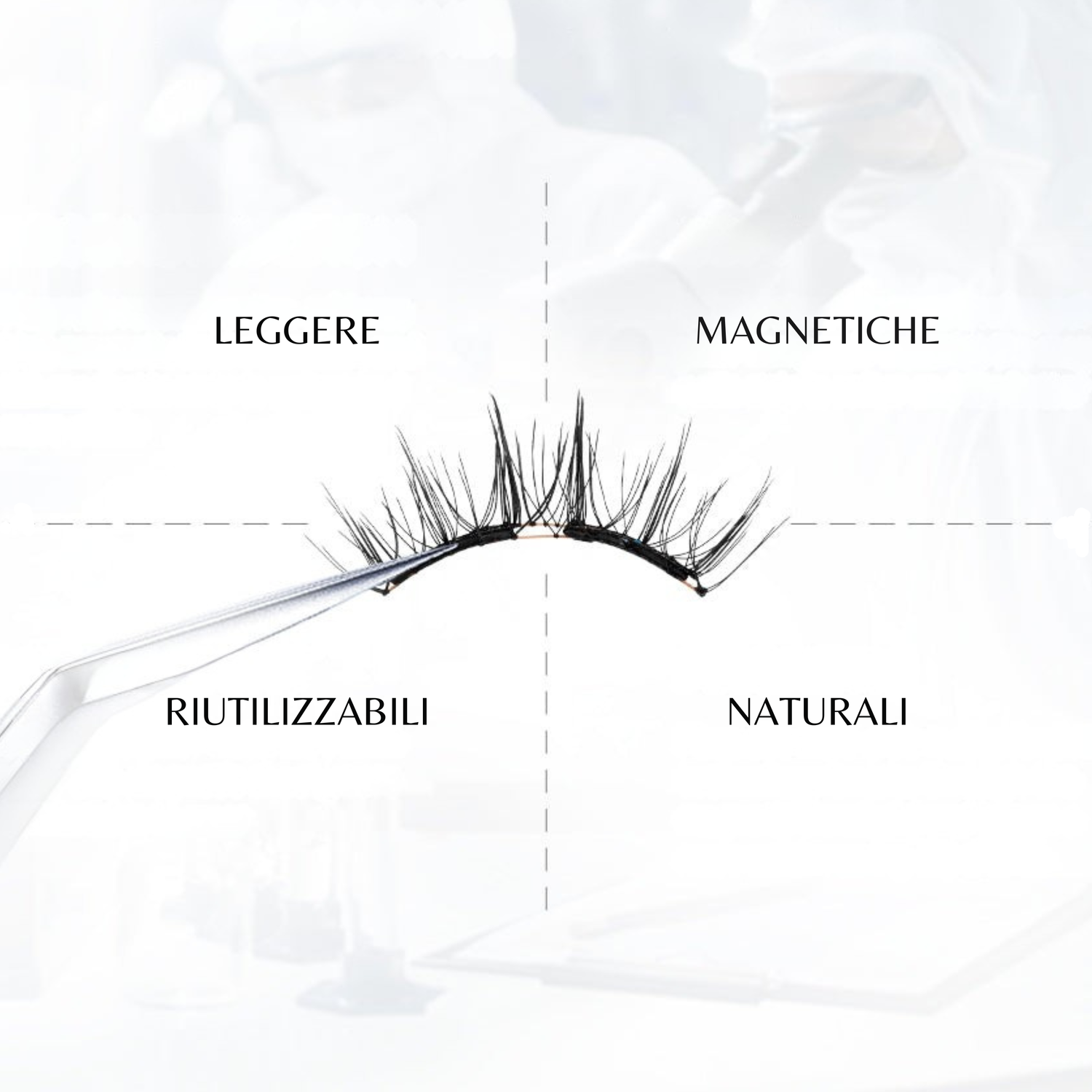 Realizzate con fibre sintetiche di alta qualità, morbide e leggere come quelle naturali. La loro curvatura viene modellata a caldo per mantenere una forma perfetta nel tempo, anche dopo numerosi utilizzi. Completamente cruelty-free, vegan e anallergiche, sono adatte anche agli occhi più sensibili. I micro-magneti sottili integrati nella base garantiscono una tenuta stabile e confortevole, senza pesare sulla palpebra. Il risultato è uno sguardo naturale, definito e raffinato, che unisce eleganza, qualità e benessere in un solo gesto.